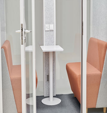 DuoPod Pro (Fits 4 Snug) SmartPod Price: $9,000 Regular Price: $10,999 Sofas Not Included Overview Expanded meeting pod designed for small team collaboration and group discussions. Features 30–35 dB sound reduction Ventilation system LED lighting Power + USB outlets Tempered glass panels Specs Capacity: 2–4 people Fire Safety Fire suppression must be handled by tenant/owner per local code (AHJ)